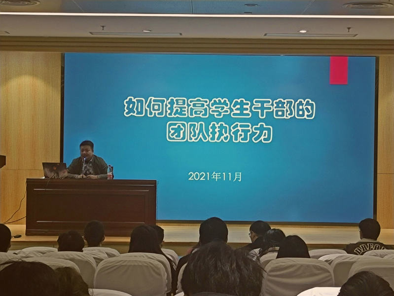 徐晶老师以团队和执行力的概念切入主题,对团队的关键因子以及如何实现团队目标进行了具体讲解,提出了团队应该从沟通协调、策略选择、职责责任、奖励机制、管理制度、内部反馈等六个方面提高团队执行力的殷切意见。在场的辅导员老师与学生骨干听后深受启发,这对于他们后续开展学生管理与班级管理将会提供源源不断的动力。