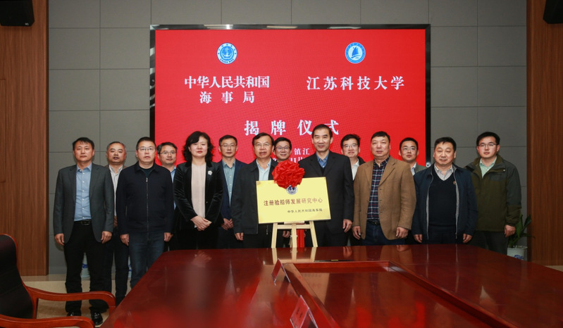 11月7日,中华人民共和国海事局与江苏科技大学合作交流会在长山校区举行。校长周南平出席会议,交通运输部海事局副处长、一级调研员邓少彪、江苏科技大学党委常委、副校长嵇春艳共同为“注册验船师发展研究中心”揭牌。
