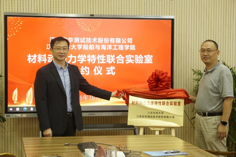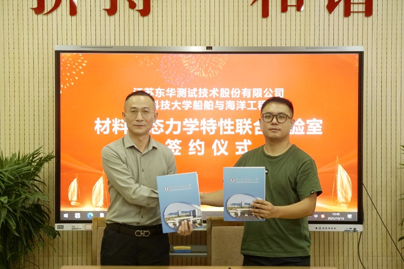 10月16日上午,竞彩网 与江苏东华测试技术股份有限公司举办“材料动态力学特性联合实验室”合作共建签约仪式。江苏东华测试技术股份有限公司副总经理顾剑峰、区域经理王杰、船海学院院长张健、副院长周效国、工程力学实验室主任沈超明以及部分教师出席签约仪式。