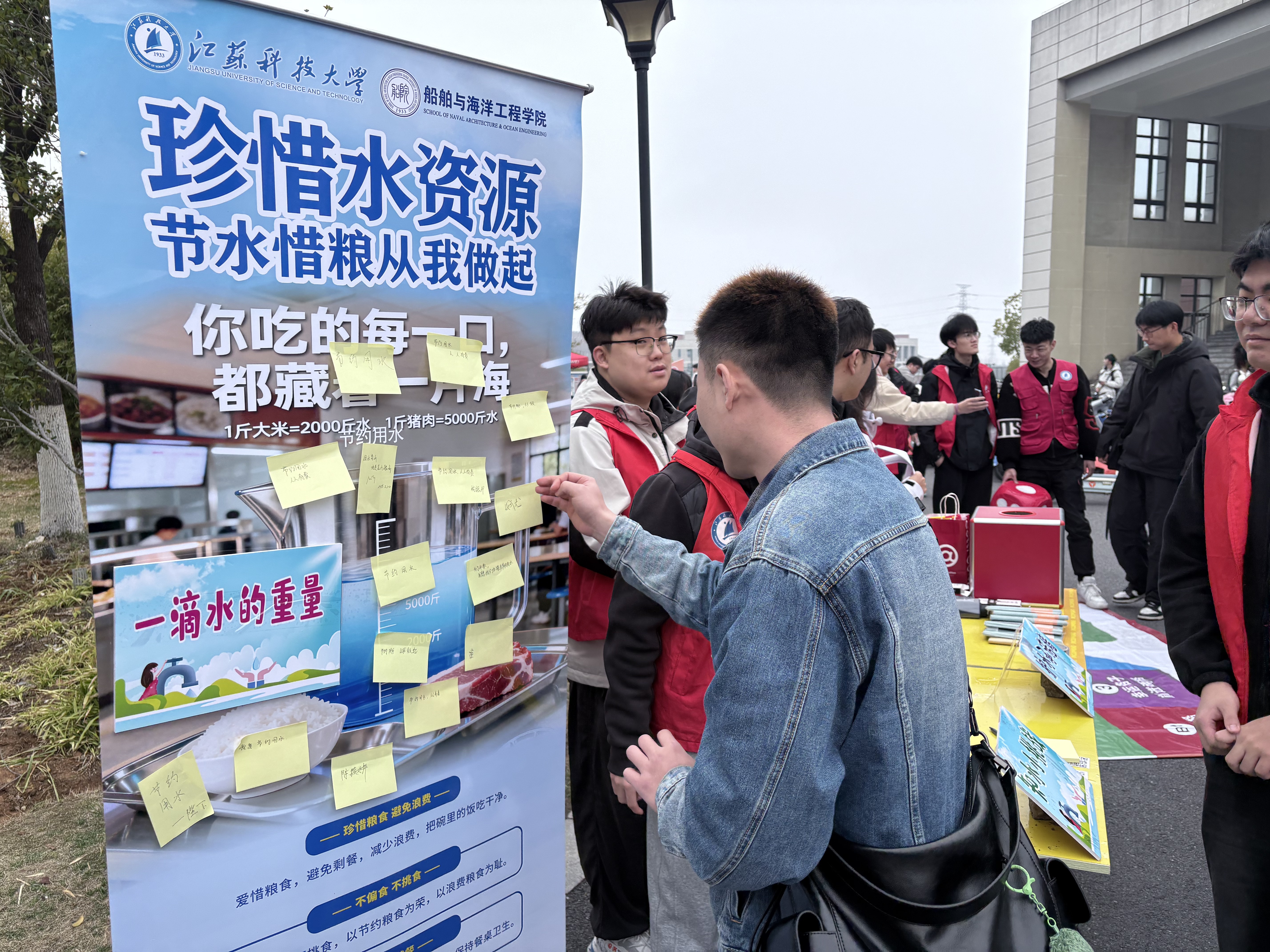 在“一滴的重量”体验区,摆放着“生产1斤大米需要2000斤水、1斤猪肉需要5000斤水”的科普展板,结合食堂就餐场景,直观呈现粮食生产背后的水资源消耗,引导师生自觉践行光盘行动,从珍惜粮食做起减少水资源浪费。“护水承诺墙”前,师生们纷纷写下“接下来一周做到随手关水龙头”“坚持光盘不浪费粮食”等节水承诺,签名后粘贴在背景板上,用庄重的仪式感强化节水责任意识。