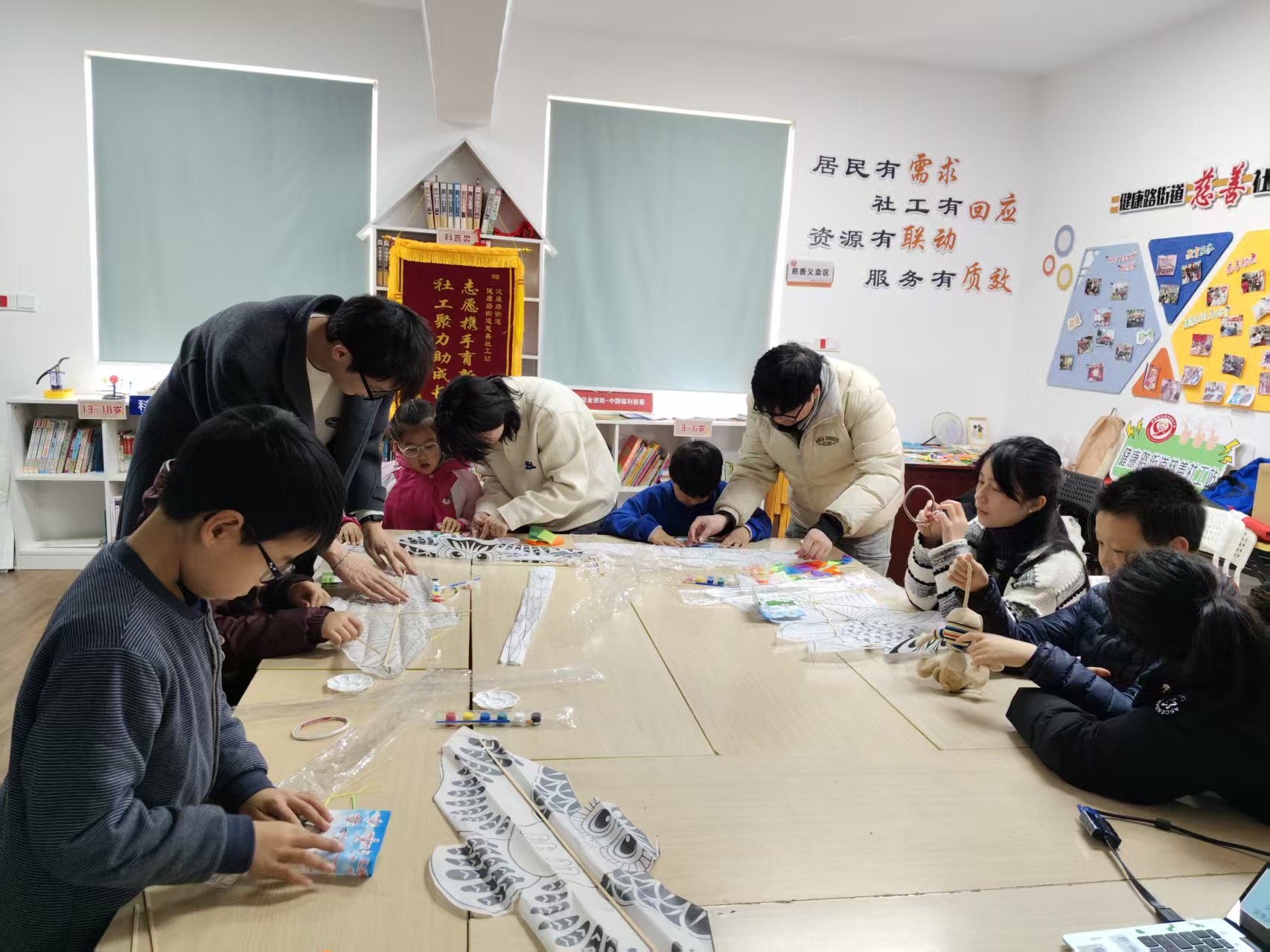 宣讲结束后,志愿者们还和小朋友们一起开展了风筝手工活动。大家分工协作,有的帮忙组装风筝骨架,有的指导小朋友们用彩笔在风筝上绘制反诈宣传标语、雷锋头像、海洋元素等图案,孩子们充分发挥想象力,用斑斓的色彩画出对平安生活的美好向往。活动最后,志愿者们和小朋友一起放飞绘制完成的风筝,共同许下“学习雷锋精神、共筑安全防线”的美好约定。